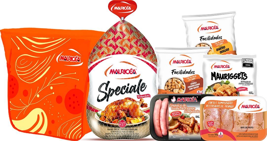 Contendo 1 bolsa térmica 15L, 1 ave natalina Speciale, 1 pct filé em cubos cebola caramelizada e bacon, 1 bife de peito temperado 700G, 01 Mauriguets, 1 linguiça petisco Congelada e 1 Filé de Peito em Cubos 4 Queijos